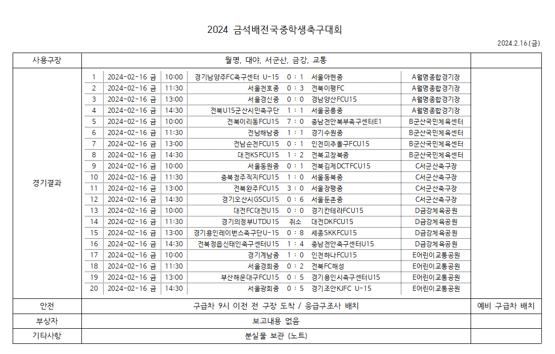 2024 금석배 전국중학생축구대회 대진추첨 결과 |