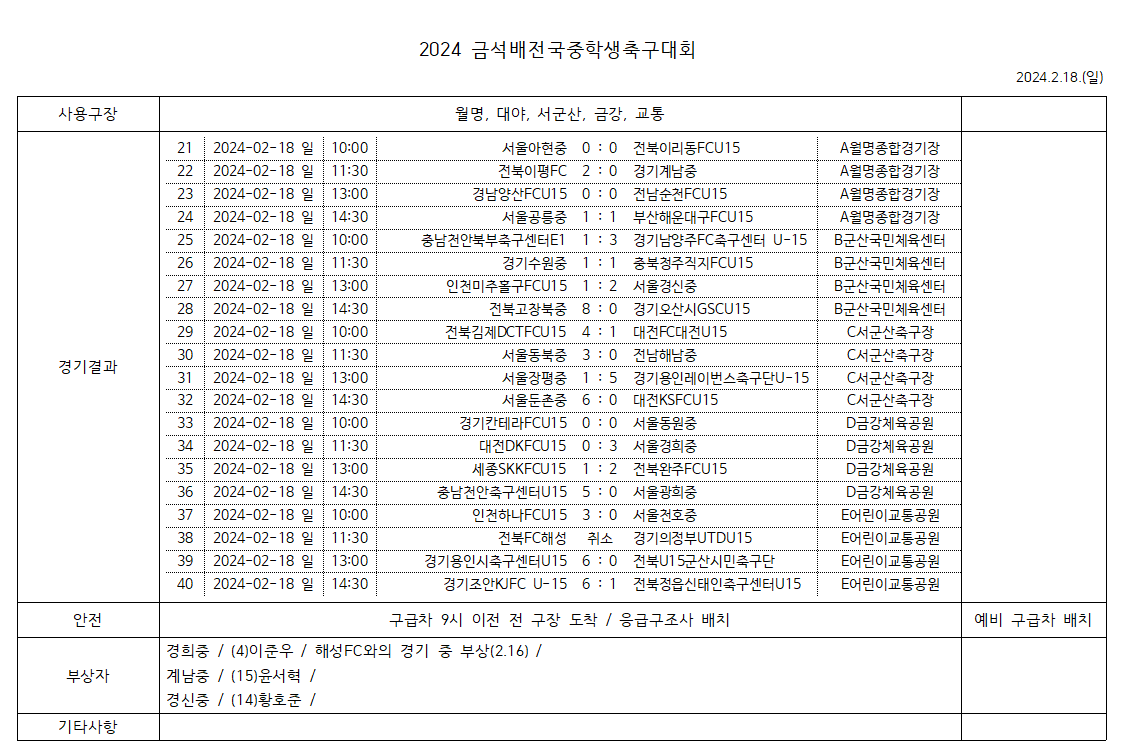 227 2024 금석배 전국중학생축구대회 대진추첨 결과 관리자 2024.01.16 2,814