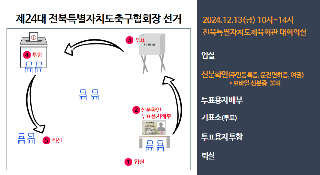 | 제24대 전북특별자치도축구협회장 선거에 따른 투표 로드맵 | 작성일 : 2024.12.04 |